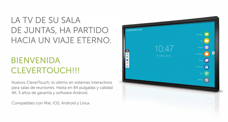 En Controlsys somos distribuidores autorizados en soluciones Clevertouch con el objetivo de disponer de una amplia gama de productos de excelente calidad y establecer un servicio adecuado para la satisfacción de nuestros clientes.