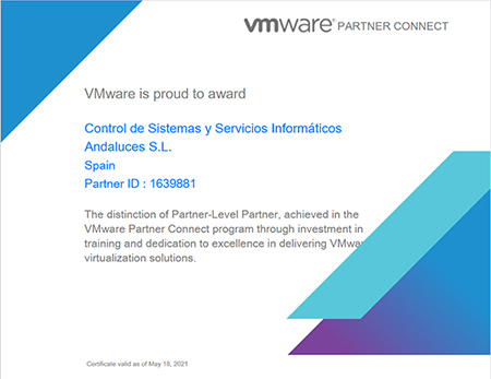 VMware concede a Controlsys, proveedor de sistemas y servicios informáticos profesionales para empresas, el reconocimiento Hyper Converged Infrastructure (HCI), competencia que nos acredita como partners avanzados en este tipo de soluciones de hiperconvergencia vSAN.