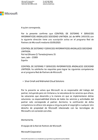 Al obtener nuestra certificación como Partner autorizado podemos asesorarle en ésta y otras soluciones de Microsoft ayudándole a conseguir sus objetivos.